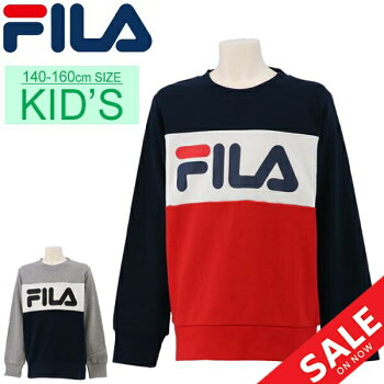 スウェットシャツ キッズ 長袖 トレーナー ジュニア 子供服 FILA フィラ プリントスエット 140-160cm スポーツウェア クルーネック ビッグロゴ カジュアル 普段使い トップス/149711